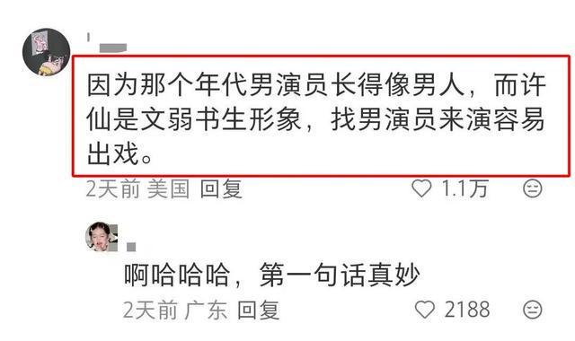 记得之前有个关于叶童扮演许仙的提问,说当年是有多保守,还要找女演员饰演男性角色,一个高赞回答是:因为那个年代的男演员长得像男人,而许仙是文弱书生,找男演员演容易出戏。