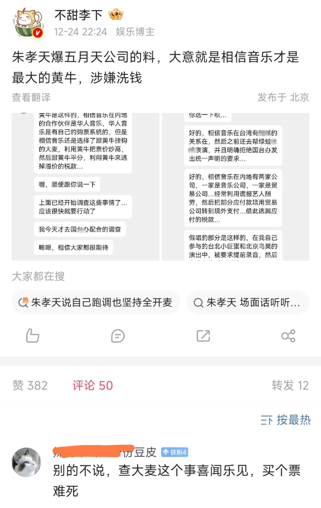甚至或者说是,朱孝天根本没有爆料,是那些八卦账号故意伪造截图来制造话题呢?