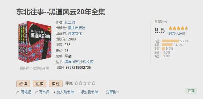 這本書開創了黑道小說的風潮,作者孔二狗也被稱為“黑道小說第一人”。