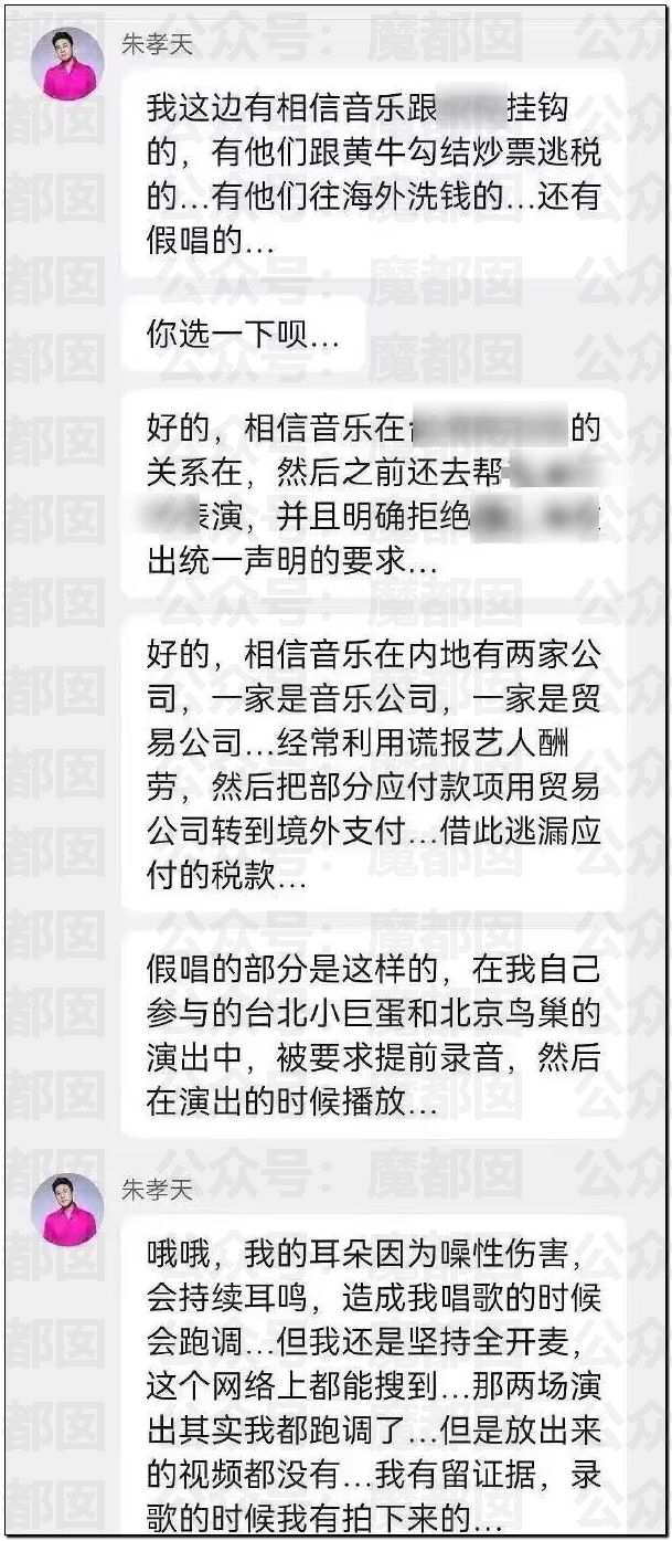 他在粉絲群中爆料:五月天所屬經紀公司“相信音樂”涉嫌多項違規行為,包括勾結黃牛炒票、通過跨境貿易公司轉移資金逃稅、強制藝人假唱,甚至牽涉立場問題。