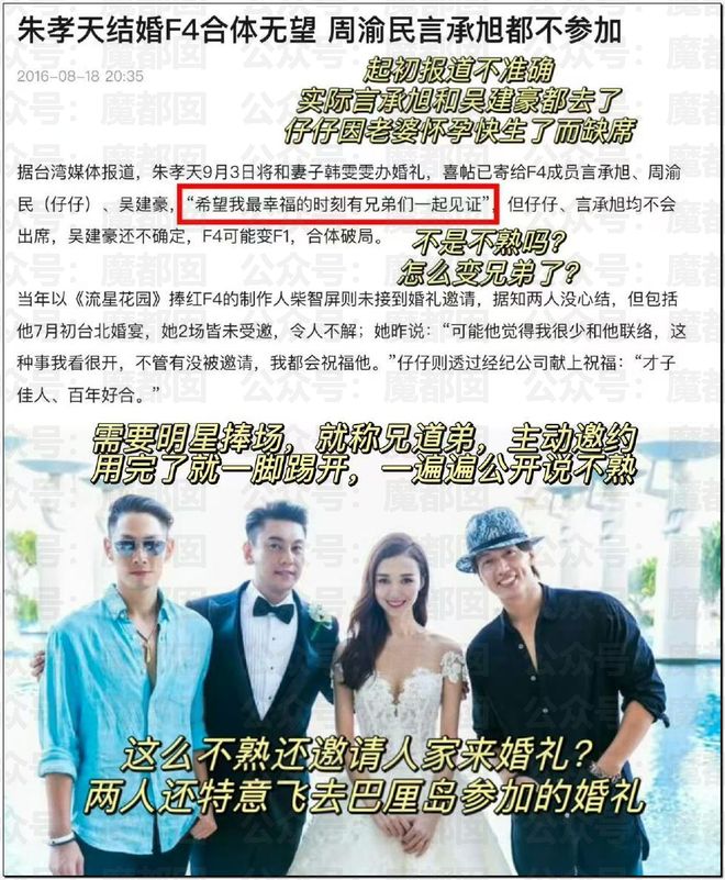 他所謂的F4事件是指F4重組變F3引爆全網熱議。據傳,朱孝天因多次直播泄密被排除在外。