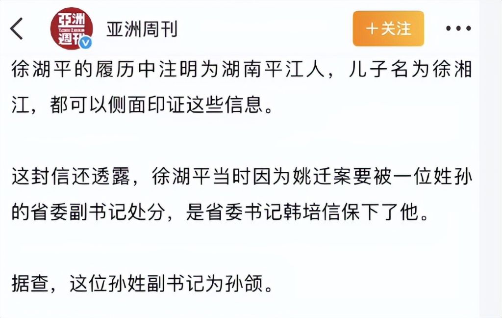徐湖平的身份也并不简单,亚洲周刊曝光了一份关于他的一封特别的私人信件。