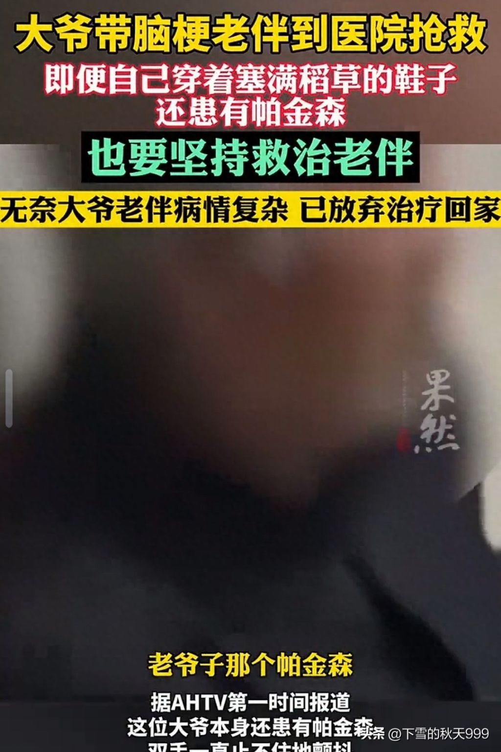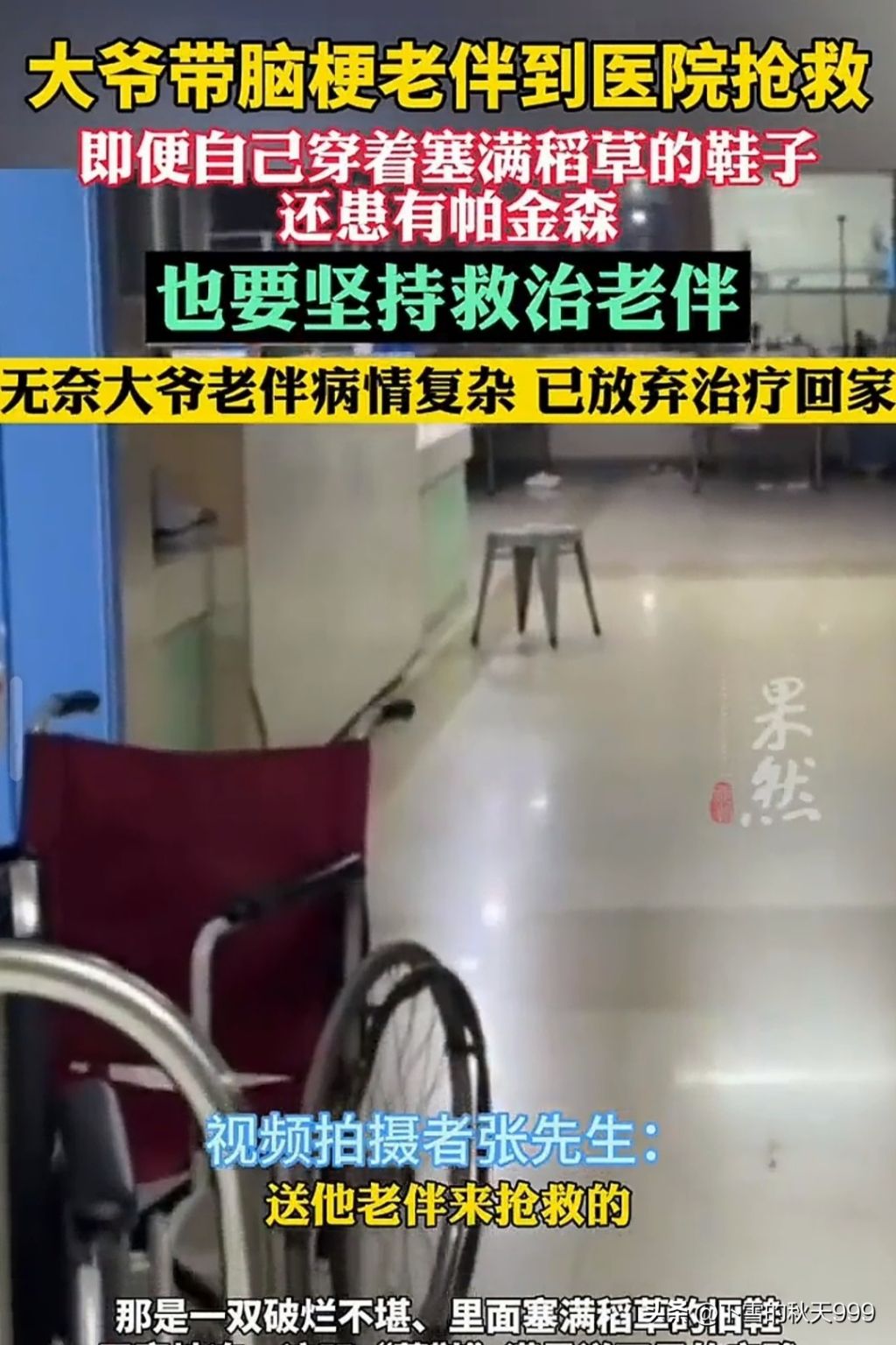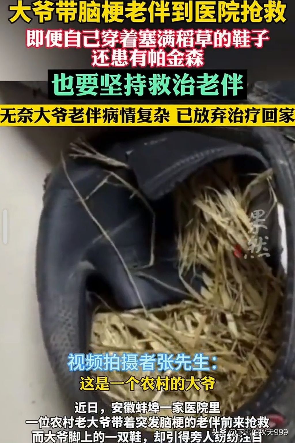 近日,安微蚌埠的一家医院内,一名年近80的老大爷脚穿着塞满稻草的鞋子,颤颤巍巍的到医院将自己突然中风到老伴送到医院里面治疗,大爷蹲在医院走廊里面无助的画面让人看了十分的心酸!