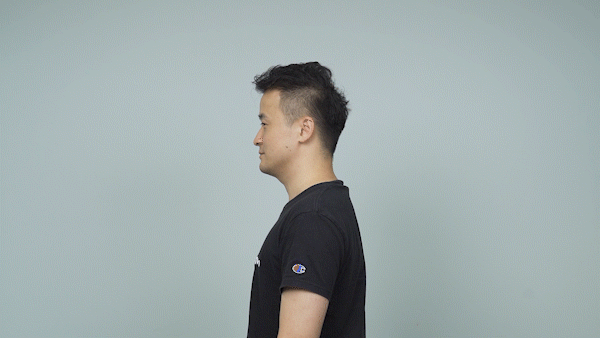 头颈后缩的动作很简单,就像图片里这样,头部缓慢的向后平行移动。掌握这个动作有个窍门,它跟做出“双下巴”的动作是一样的。