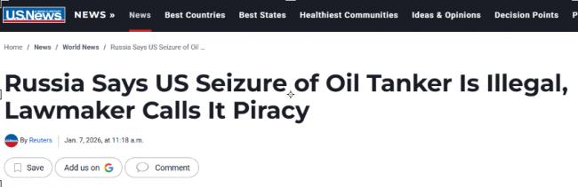 《U.S.NEWS》援引俄罗斯国家通讯社塔斯社的报道称,普京总统所属政党执政党统一俄罗斯党议员、高级政治家安德烈·克利沙斯在Telegram上发文称:“在委内瑞拉发生了一次执法行动,造成数十人死亡,美国在公海上公然实施了海盗行为”。