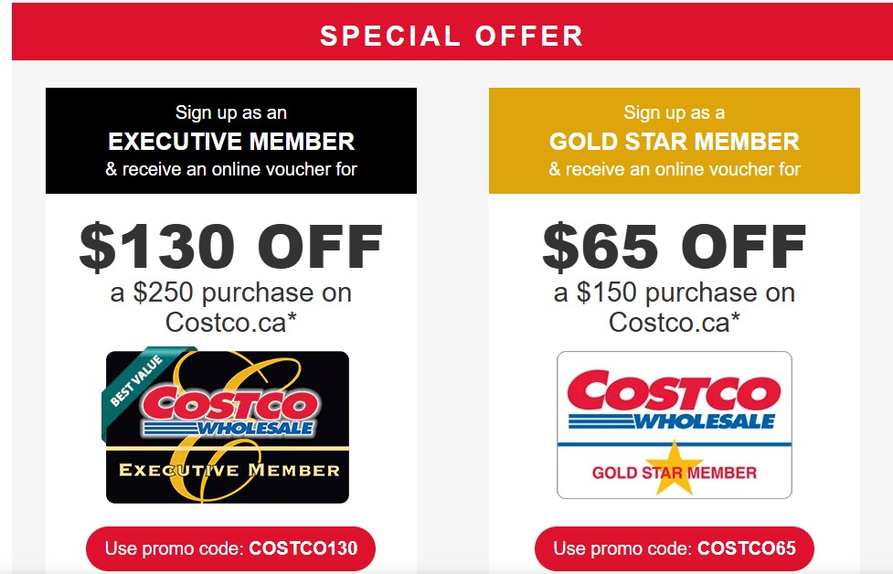 • 当你注册成为 行政会员(Executive Member) 时,可获得一张 在 Costco.ca 消费满 250 加元立减 130 加元的线上代金券。
