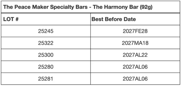 Peace by Chocolate 公司正在召回“和谐巧克力棒”(The Harmony Bar)和“经典15粒装什锦夹心巧克力礼盒”(Classic Box of 15 various cliped chocolates),这两款产品均于9月7日至12月3日期间在线销售。
