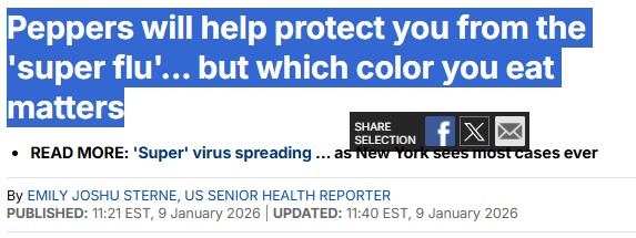 (加西网综合)专家指出,在冬季饮食中加入彩椒,或有助于增强免疫力,抵御正在北美传播的新型“H3N2超级流感”。