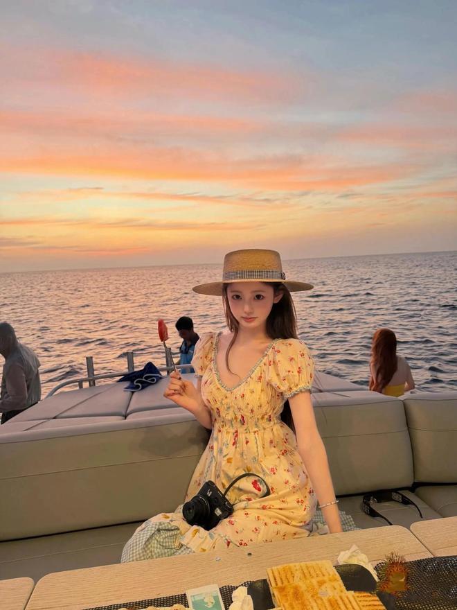 懶懶乘著私家游輪去海釣,她穿宮廷風的碎花裙,戴著平頂的小禮帽,甜美的像個公主。