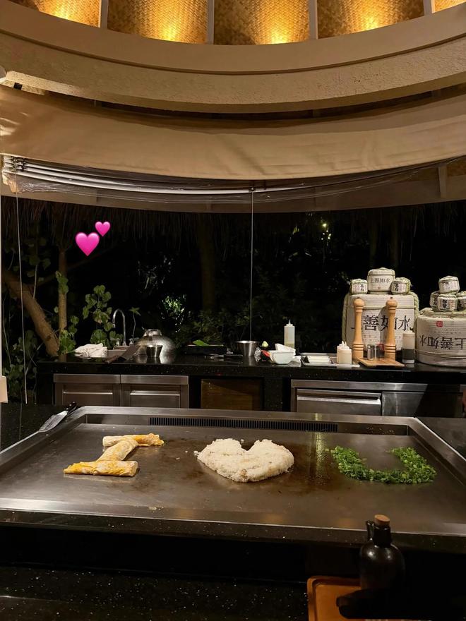 兩人一起吃鐵板燒,王思聰還特別浪漫,用食材拼出I LOVE YOU的字樣。難怪懶懶這麼愛王思聰,討女孩子歡心的方式,他是一點都不吝嗇。
