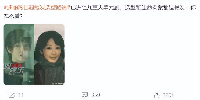 迪丽热巴绝对是高颜值女星,她大部分造型都是长发,选择短发出演《九重天》,确实让人眼前一亮,看到迪丽热巴的短发造型,很多网友都想到杨紫,因为在生命树中,杨紫也是“短发”。