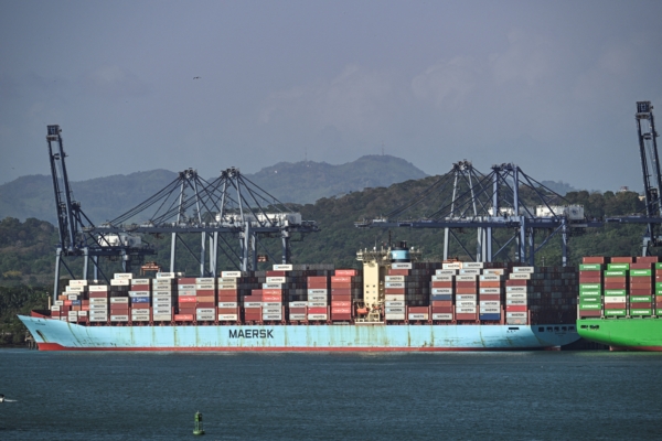2025年2月4日,一艘货船在巴拿马城巴尔博亚港等候穿越巴拿马运河。 (Martin Bernetti/AFP via Getty Images)