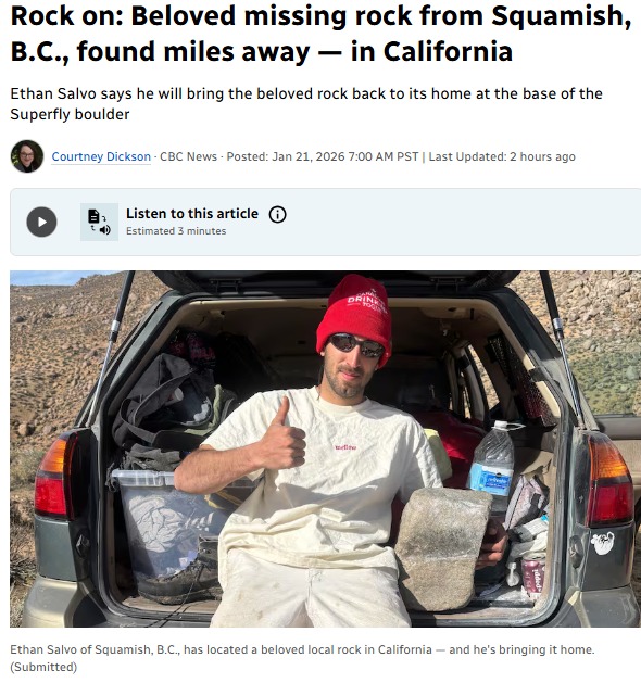 如今,Portable 已被成功尋回。薩爾沃表示,他將把這塊“遠走他鄉”的巨石送回它的家——斯闊米什 Superfly 巨石的底部。