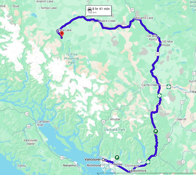 牧场位于海岸山脉另一侧,距离主要城镇甚远,靠近从 Williams Lake 通往 Bella Coola 的公路。最近的社区是人口约 100 人的 Tatla Lake,其他附近社区包括 Alexis Creek、Anahim Lake 及 Williams Lake(车程约三小时)。