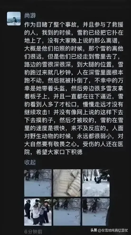 “那几个游客几乎是自己走进了豹子的攻击范围,在距离雪豹仅五米左右的位置陷入了深雪,连转身都困难。”
