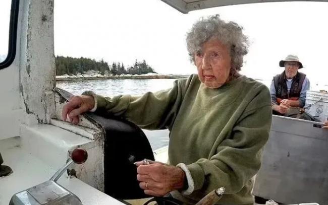 过百岁后,她依然一周三天凌晨起床、出海、拉笼子、清理诱饵袋、测量龙虾、套橡皮筋,在摇晃的船上重复这些动作几百次,普通年轻人都吃不消…