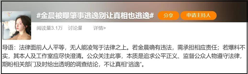 官媒發聲!質疑金晨涉嫌酒駕或毒駕,本人沉默