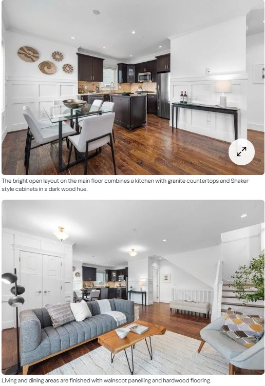 该物业属于一个由三套住宅组成的非传统分契物业,允许养宠物出租,周边学校资源丰富。主层为明亮开放式布局,厨房配花岗岩台面与深色Shaker风格橱柜;楼上设两卧两卫,一楼另有一间带独立卫浴的卧室,并可直通庭院花园。