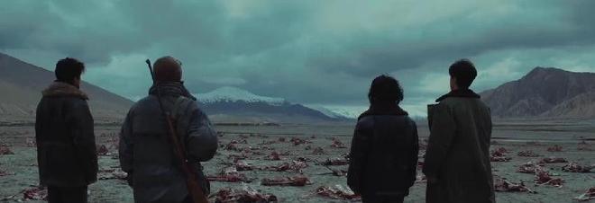 《生命树》走的是双线叙事,一条线讲 1996 年胡歌饰演的多杰带着巡山队,从想靠探矿脱贫转向拼死保护藏羚羊,雪地里藏羚羊尸体堆成山的镜头,没加多少煽情音乐,却看得人后背发凉;