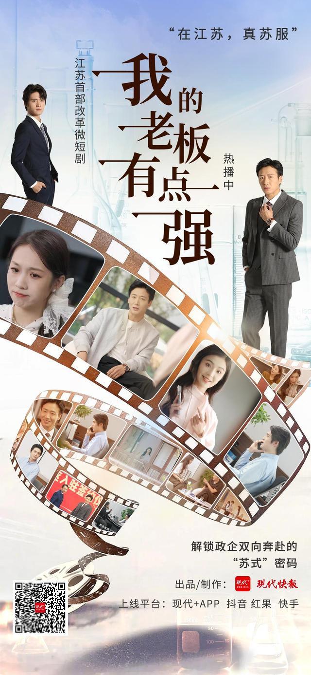 《我的老板有點強》已在現代+APP、抖音、紅果、視頻號、快手等多個主流短視頻平台上線,每集3—5分鍾,共9集。以微短劇為載體,將江蘇優化營商環境的政策措施融入劇情,讓“蘇式服務”的精細、高效與溫度變得可感可知。