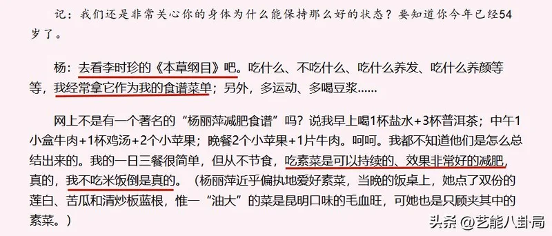 接受媒体专访时,杨丽萍曾说自己不吃米饭。