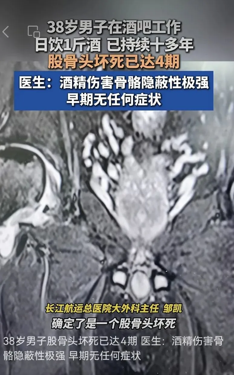 酒吧员工10年日饮一斤酒,股骨头坏死已达4期