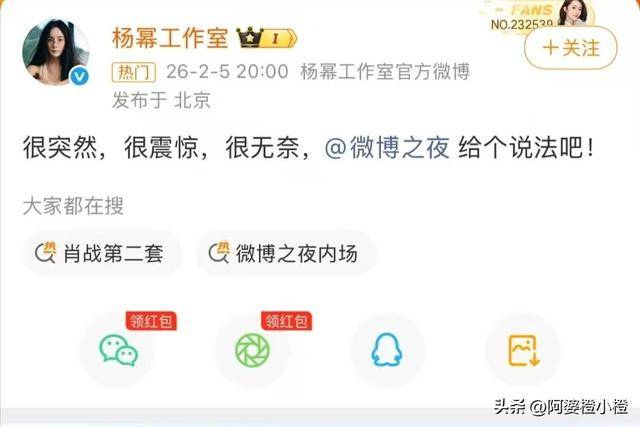 杨幂: 微博之夜落幕,2人出尽风头,杨幂被骂惨