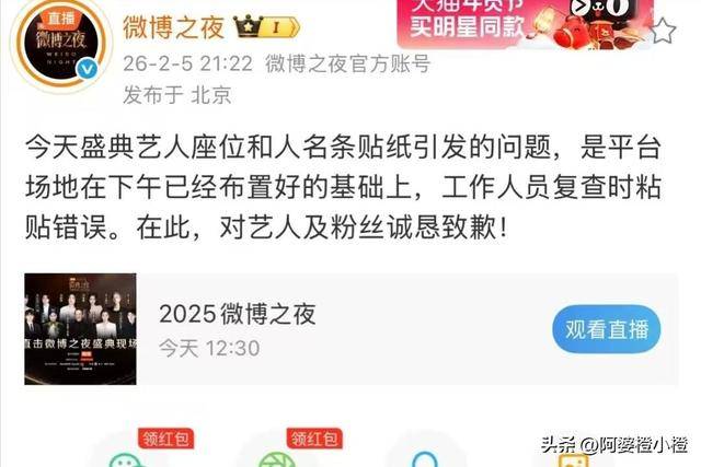 今年的微博之夜从开始就充满了戏剧性,本应是致敬作品的盛典,却因一场核心区座位乌龙彻底“跑偏”。