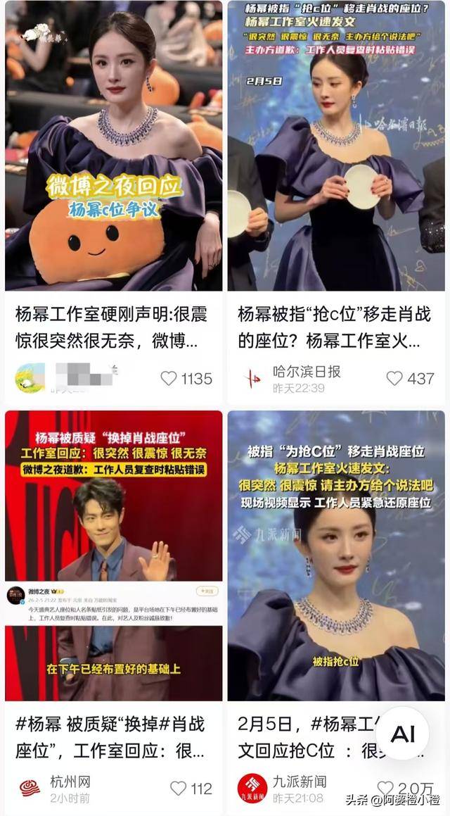 这下可捅了马蜂窝,在粉丝们看来,那个位置是绝对的“中心位”,杨幂这一坐,立刻被解读成了“硬挤”进去抢风头。