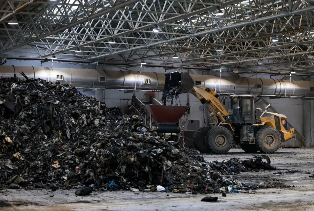 2025年12月25日,工程车在晾晒车间进行垃圾搬运工作/新华社记者 毛思倩 摄