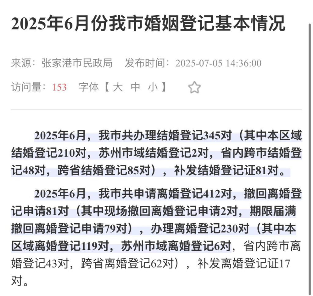 按照2024年的数据来看,离结比为57.5%,这意味着平均每100对夫妻结婚,有57.5对夫妻离婚