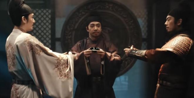 郝平在家和大电视里的赵弘殷同框,人脸几乎一比一的画面,让演员和角色达成了完美共振。就连戏份不多的演员,也各有巧思,吴昊宸敬病重的六郎,朱嘉琦敬意气风发的七郎,满是对角色的惋惜;