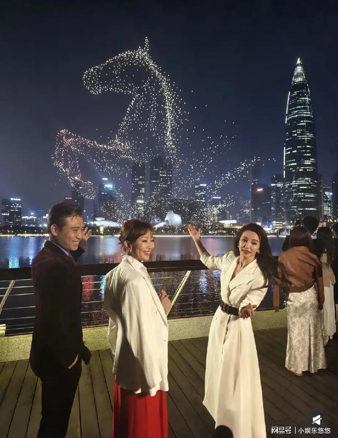 2月13日晚上,深圳湾的人才公园上空有无人机表演,李乃文和李冰冰一起过来了,两位是参加某品牌的活动。
