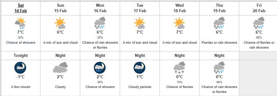 加拿大环境部未来七天的温哥华天气预测,周一温哥华有30%的机会出现阵雨或小雪。恰逢华人新年除夕,希望除夕瑞雪送福!