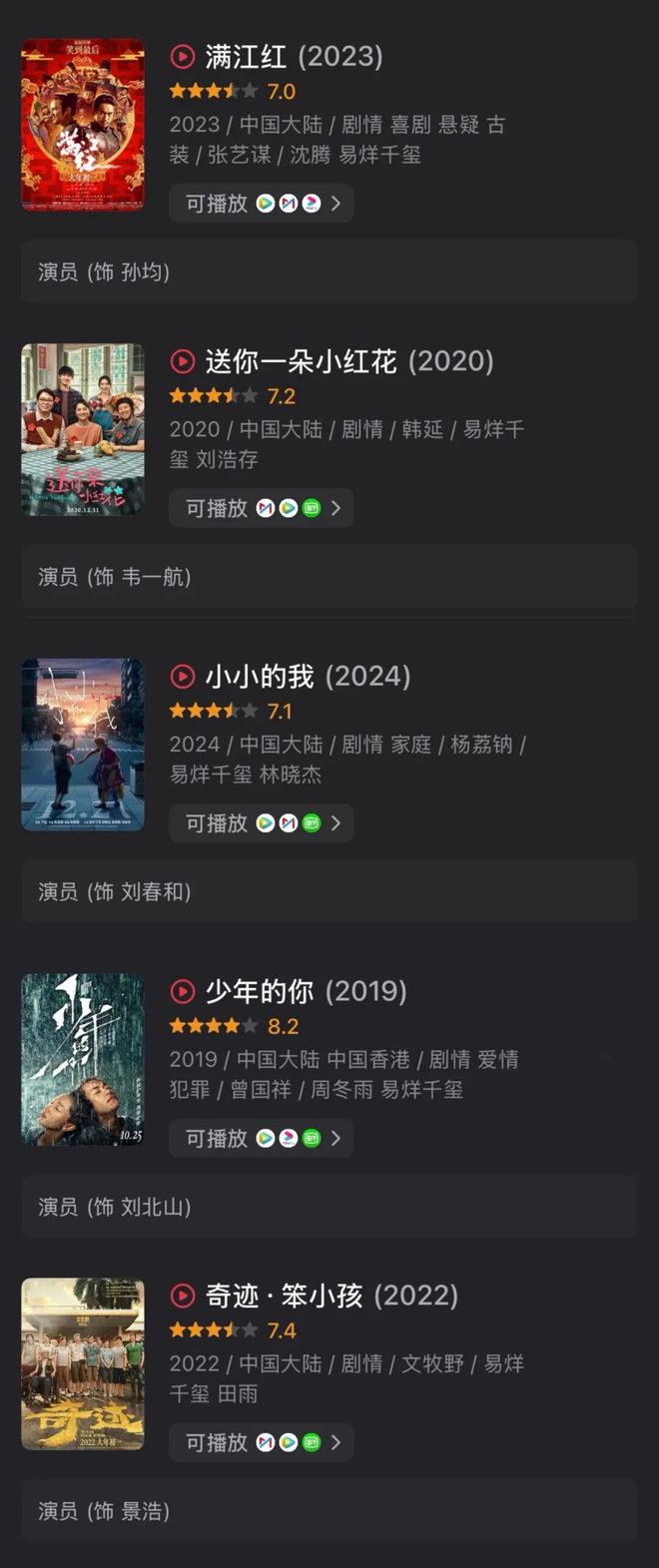 其主演的电影豆瓣评分没有下过6.5,已累计超200亿票房,从金鸡到东京、柏林再到戛纳电影节,“千玺严选”也成了某种电影购票指南,观众愿意为易烊千玺走进电影院。