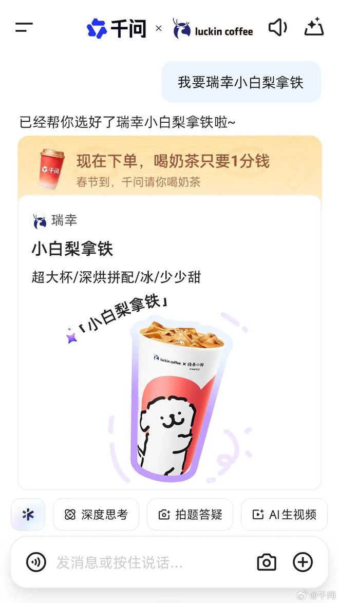跟AI说句话就能帮你买奶茶,千问做到了。