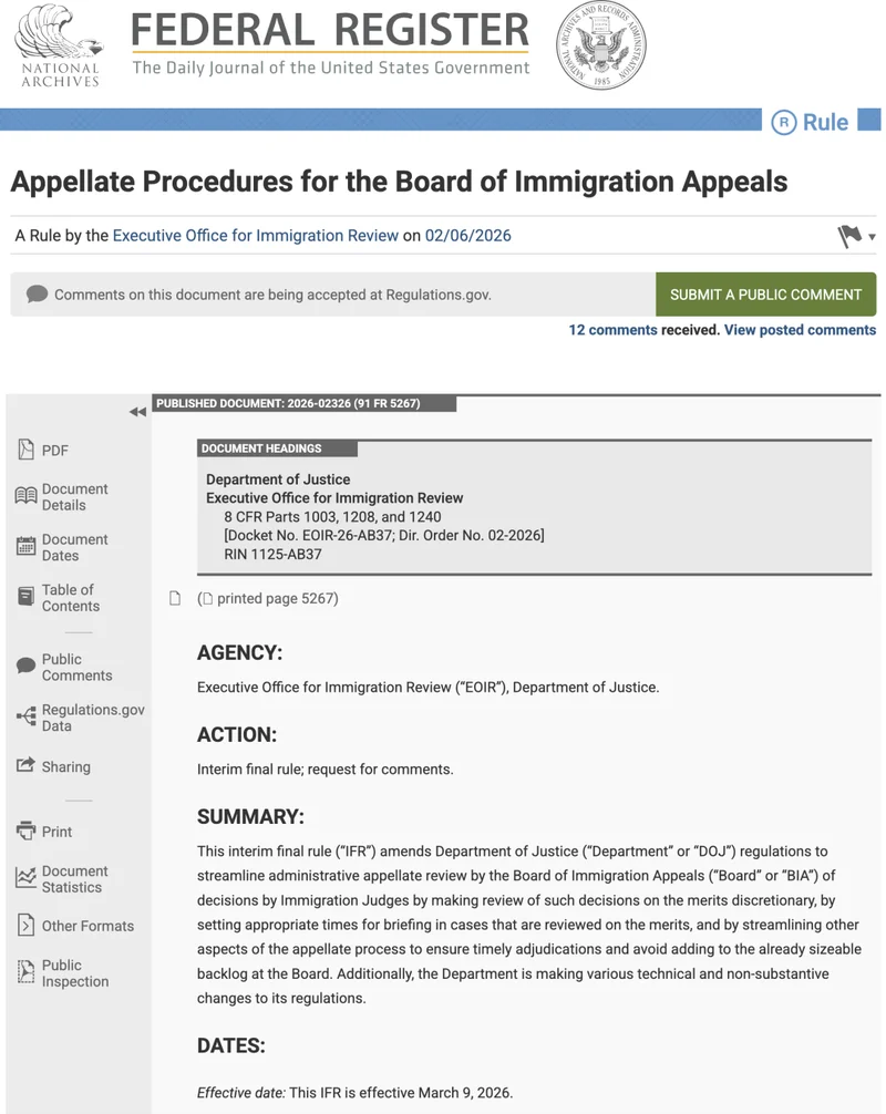 美国,如果一名移民移民法庭被判决驱逐,他们通常可以向上诉移民裁定委员会(简称 BIA)提出上诉,寻求对移民法官判决的复审。这本来是很多人争取保留合法身份或提出新证据的重要法律途径。