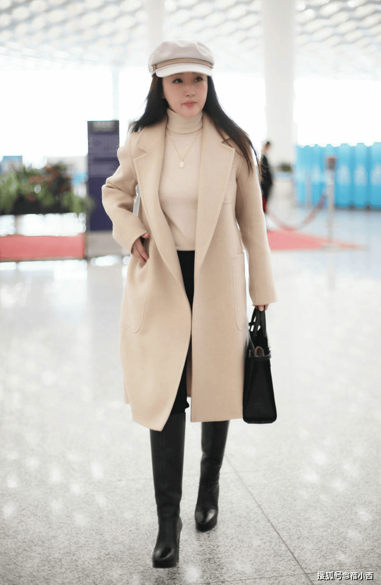 冬季还可以参考这种米色大衣+报童帽造型,将温柔知性的“老钱风”演绎得淋漓尽致。宽松的米色大衣,采用了极简的剪裁和高级的面料,没有多余的装饰,却自带一种从容不迫的贵气。下装的黑色紧身裤,收紧了下半身,与宽松的大衣形成“上宽下窄”的经典比例,显瘦又显高。头上的白色报童帽,是整个造型的点睛之笔,既增添了复古感,又修饰了脸型,完美诠释了“岁月从不败美人”的真谛。