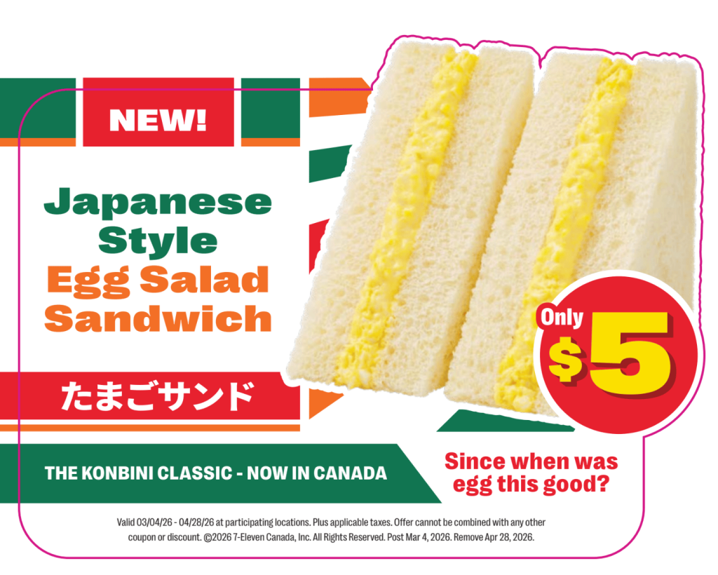加拿大 7-Eleven 便利店即将推出其自有版本的 Tamago Sando,这款日式鸡蛋沙拉三明治日本 7-Eleven 便利店畅销十余年。