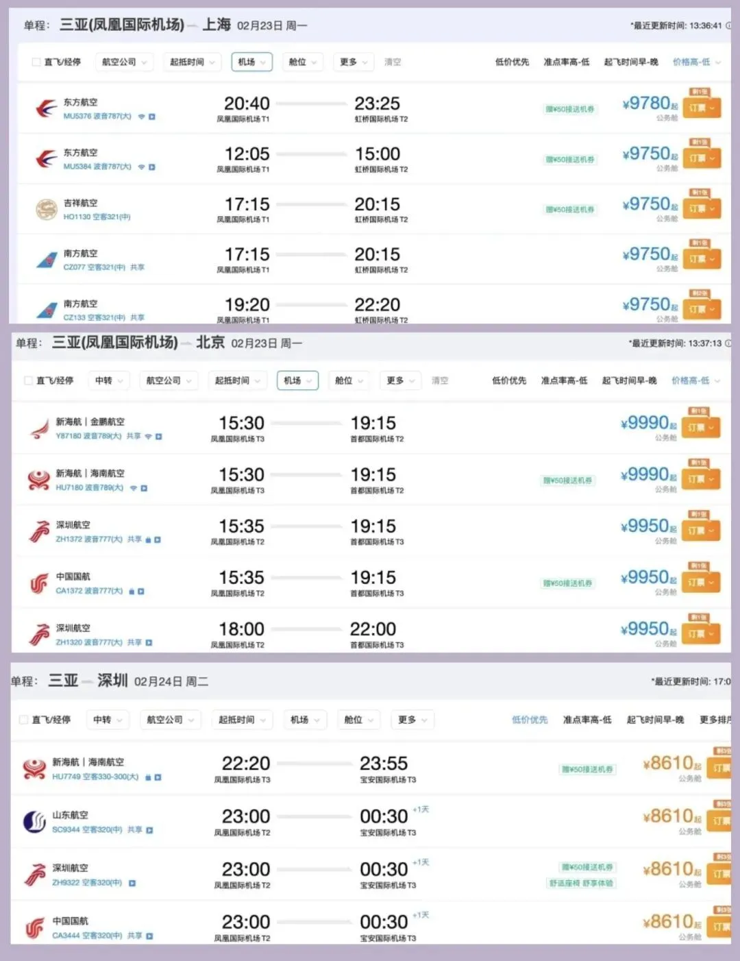 〓 截至2月24日下午3点三亚凤凰国际机场出港余票情况,图源:新京报贝壳财经