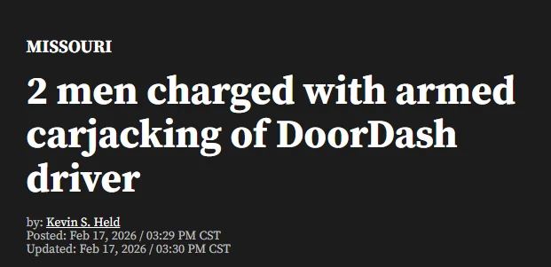 当地媒体 FOX 2 St. Louis 也在报道中提到,这起案件属于近年来针对送餐司机犯罪上升趋势的一部分,部分案件甚至升级为枪击、追车和重罪指控。