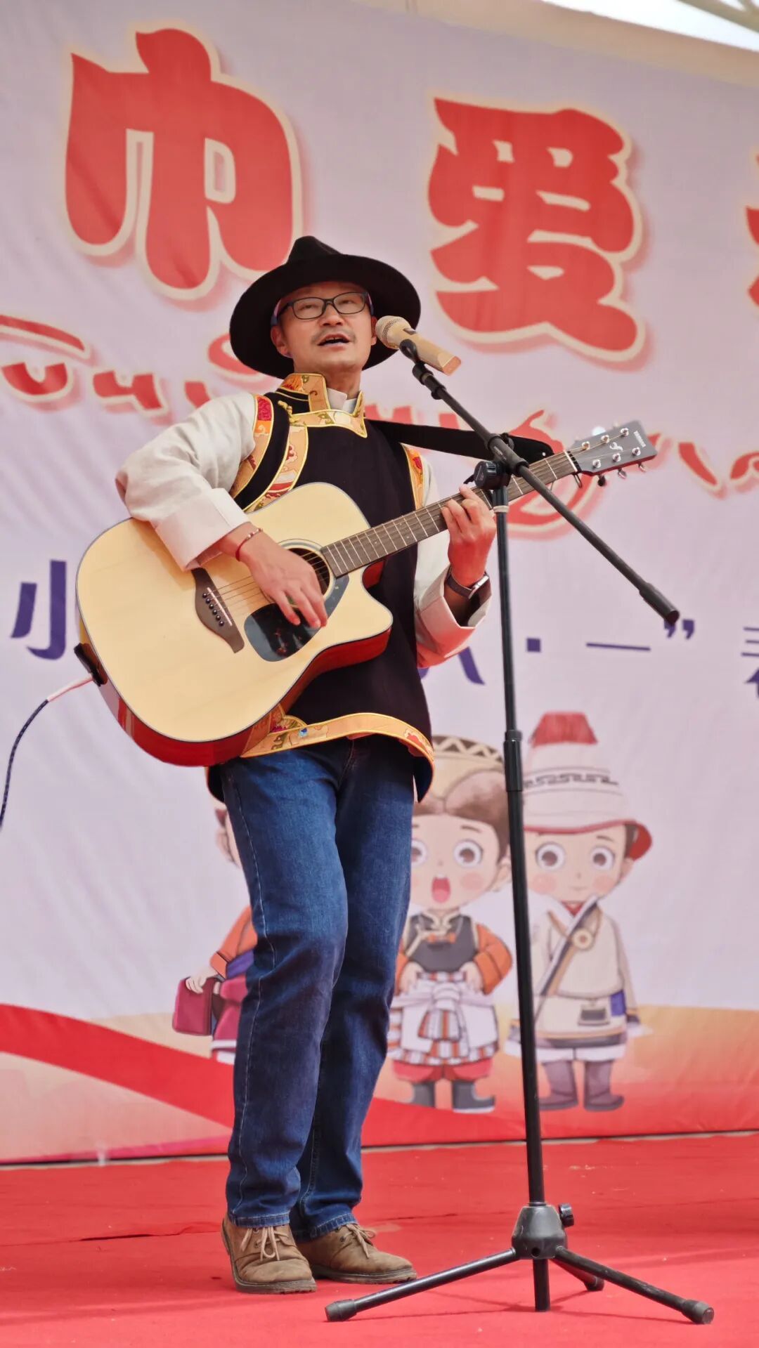 我作為音樂老師,要上台表演節目,但是我沒有漢服,只有學校的老師們幫我東拼西湊配了一套上半身藏服上台表演。(其實我自己也有藏服,我買了三件,但是都是冬天穿的厚款,不適合六一節這種天氣。)