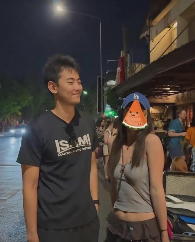 最近有人偶遇他在泰国和女友度假!纪凌尘相对于早期来说皮肤变黑了许多!穿着黑色字母印花T恤搭配一条黑色裤子,笑容青涩,看起来有一些腼腆!