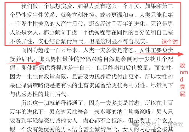 天才,本该处理最顶尖逻辑模型的大脑,转而俯身去拆解已婚女性的心理伤痕,并将其封装成一套可量化的、极低成本的“狩猎代码”,真的让人感觉很荒诞。。。我真的质疑这是清华毕业生写的么?小红书上有人读完发出了和我一样的质疑,我给这质疑狠狠点了小红心。