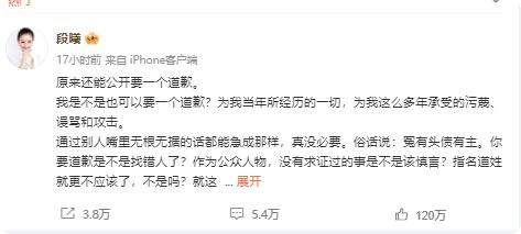算是對李雨桐爆料中早年出軌段曦和謝娜在一起的風波進行正式回應。