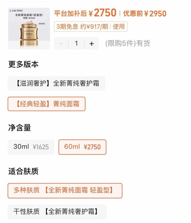官方60ml 的正裝要 2700 元+,咱們 4 個15ml 的中樣加起來相當於一瓶正裝,還加送 2個5ml 的同系列眼霜,一共預估到手只需要696 元!