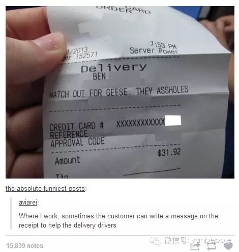 例如在点外卖的时候温馨提示送餐员:小心我家门口的鹅,它们很贱