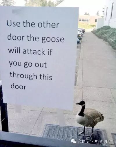 或者在门口贴告示:请用另外一道门,如果开这道门鹅会袭击你
