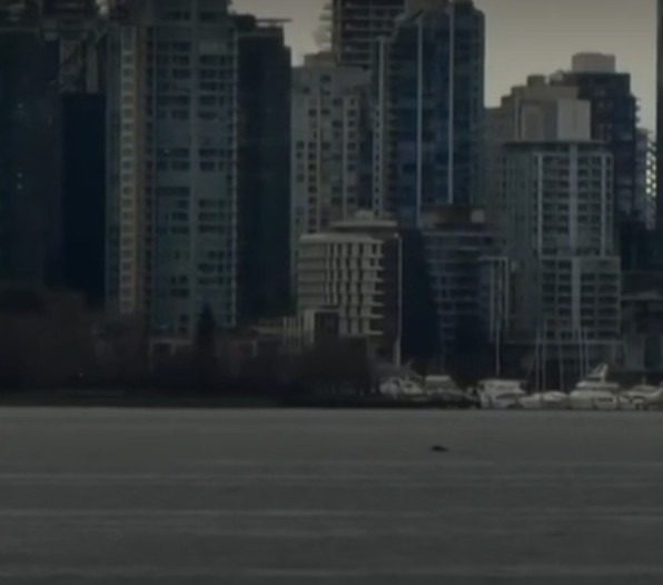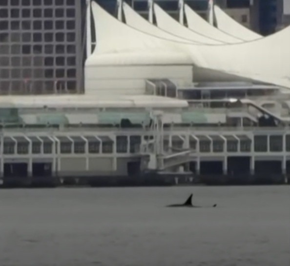 (加西网综合)周六上午,大温居民劳伦·齐利克拍摄了几段虎鲸在温哥华市中心布拉德湾游泳的视频