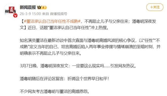 评论区不少粉丝指这是潘粤明对董洁开口诉说往事的回应。
